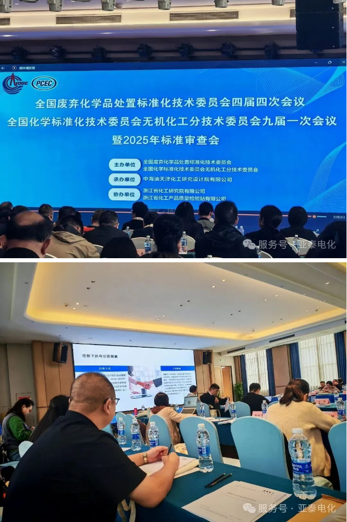 11月1-4日,全國化學標準化技術(shù)委員會無機化工分技術(shù)委員會(TC63/SC1)九屆一次會議暨2025年標準審查會在杭州召開,亞泰電化有限公司作為標準起草主要單位參加該次會議。會議期間,按照工作要求,對多項國家標準、行業(yè)標準項目進行審查,對無機化工產(chǎn)品雜質(zhì)元素的測定、氯酸鹽企業(yè)節(jié)能診斷技術(shù)規(guī)范等多項國家和行業(yè)標準的制修訂進行了討論交流。